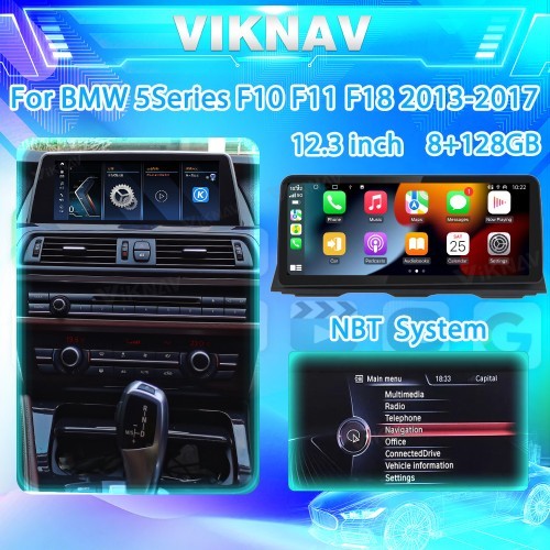 رادیو ماشین 12.3 اینچی برای BMW سری 5 F10 F11 F18 2013-2017 سیستم NBT بی سیم اندروید اتو GPS با صفحه نمایش چند رسانه ای 128GB