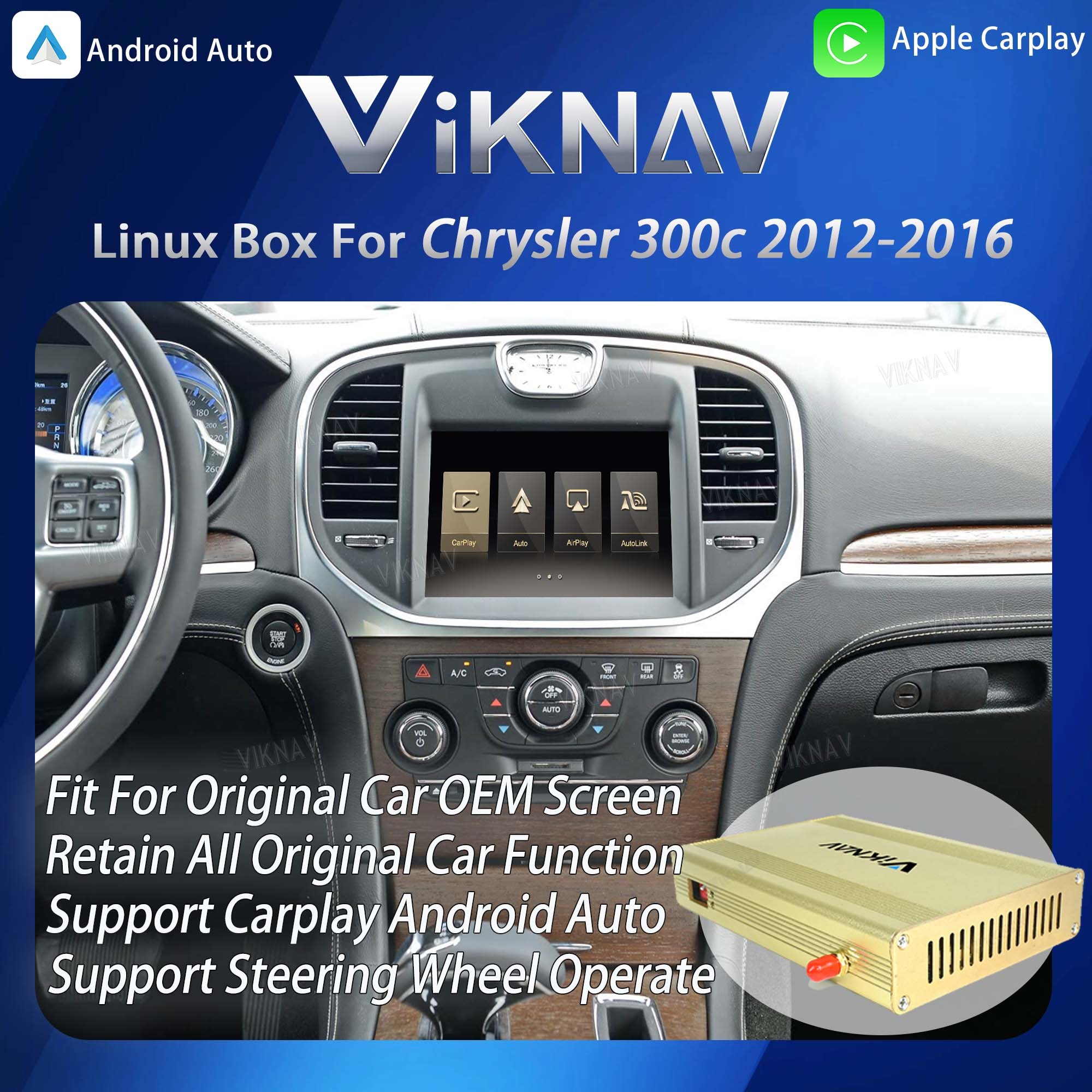 جعبه رابط سیستم لینوکس Viknav برای Chrysler 300C 2012-2016 Wireless Apple CarPlay Android Auto Stereo Only پشتیبانی فقط از صفحه نمایش اصلی خودرو